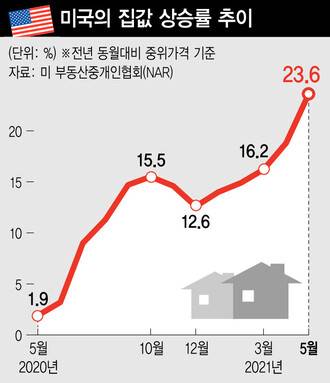 미 전국부동산중개인협회는 이날 미국 기존 주택 가격의 중간치가 5월 35만300달러(약 3억8500만원)로, 한해 전보다 23.6% 높은 가격을 기록했다고 발표했다. 네덜란드의 5월 집값도 한해 전보다 12.9% 상승함으로써 2001년 이후 가장 높은 상승률을 기록했다고 이 나라 통계청이 발표했다.