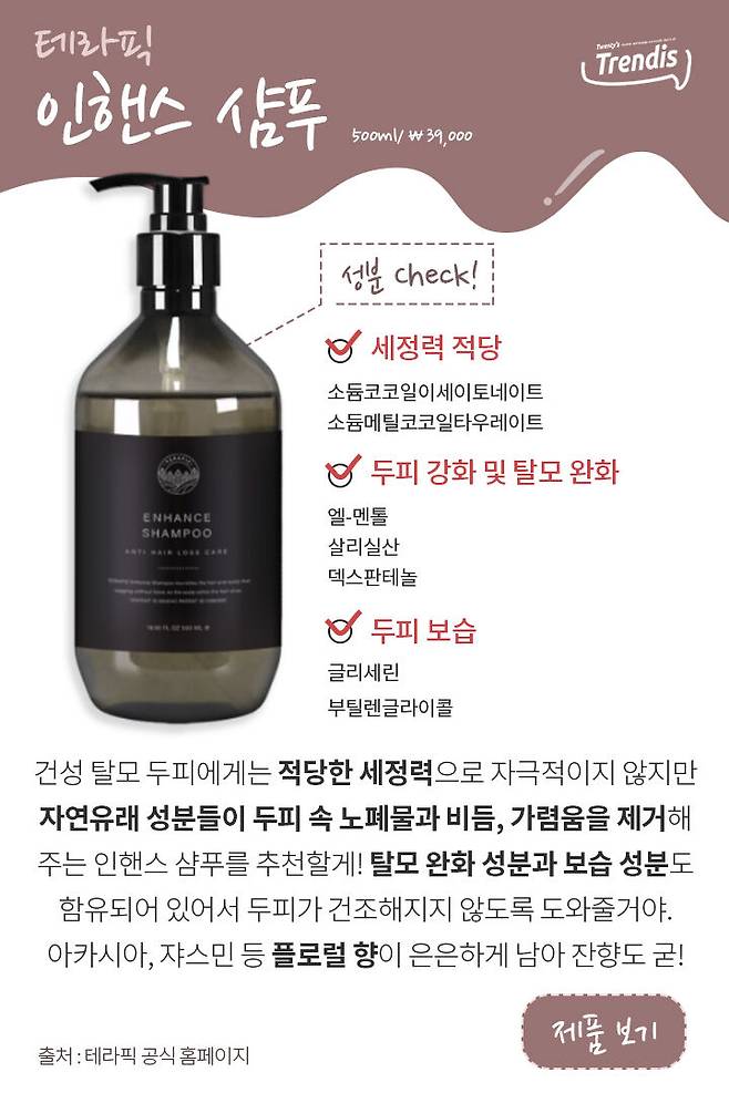 주는 인핸스 샴푸를 추천할게! 탈모 개선 성분과 보습 성분도