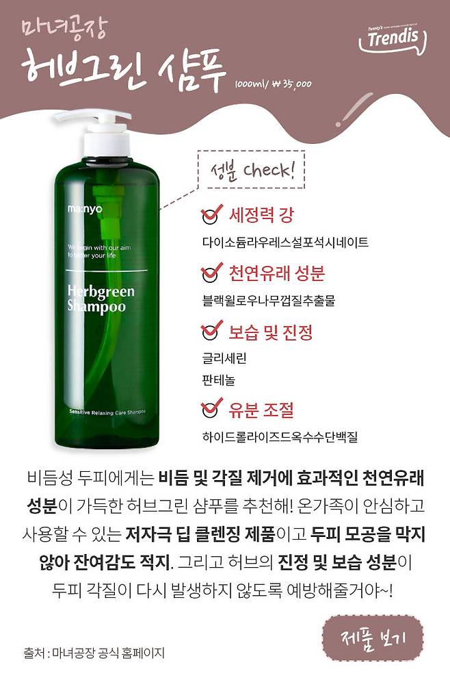 자연유래 성분들이 두피 속 노폐물과 비듬, 가렴움을 제거해