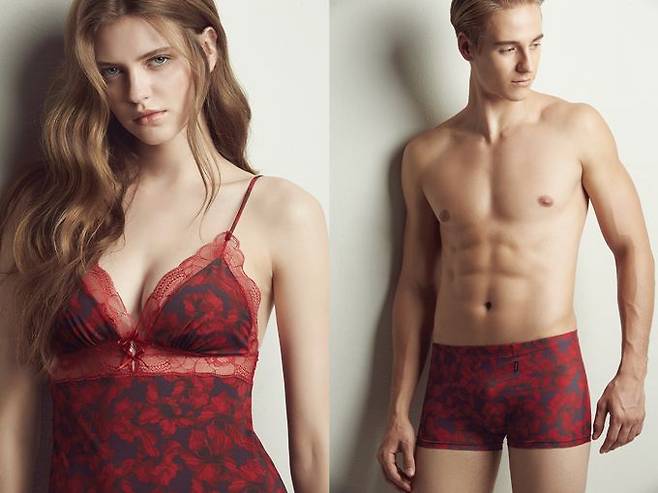 「비비안」은 크리스마스 무드와 어울리는 레드 커플 란제리를 출시했다. 플라워패턴 프린트와 레드 컬러의 조합으로 연말 선물용으로 적합하다.
