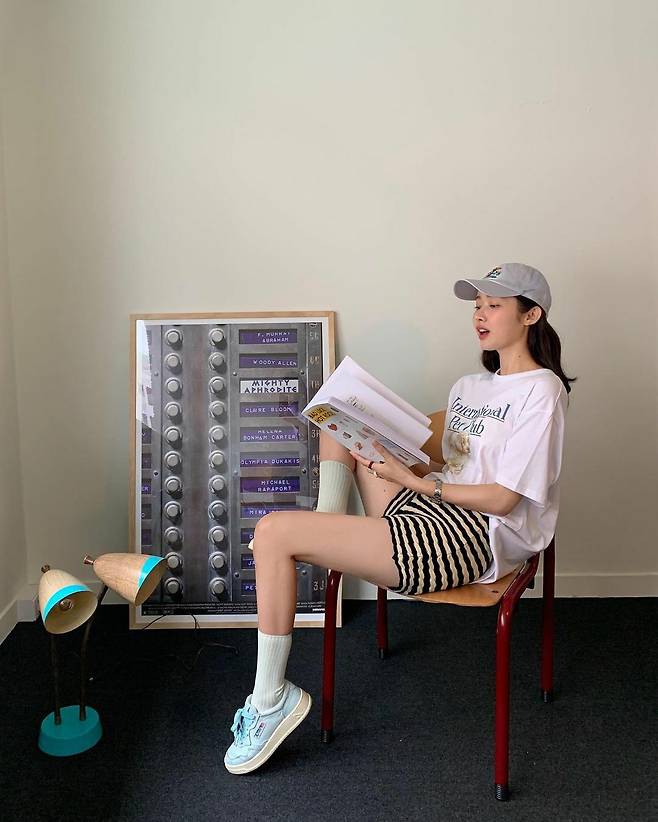 흰색 반팔티와 쇼츠를 매치해 캐주얼하게 스타일링 했다.