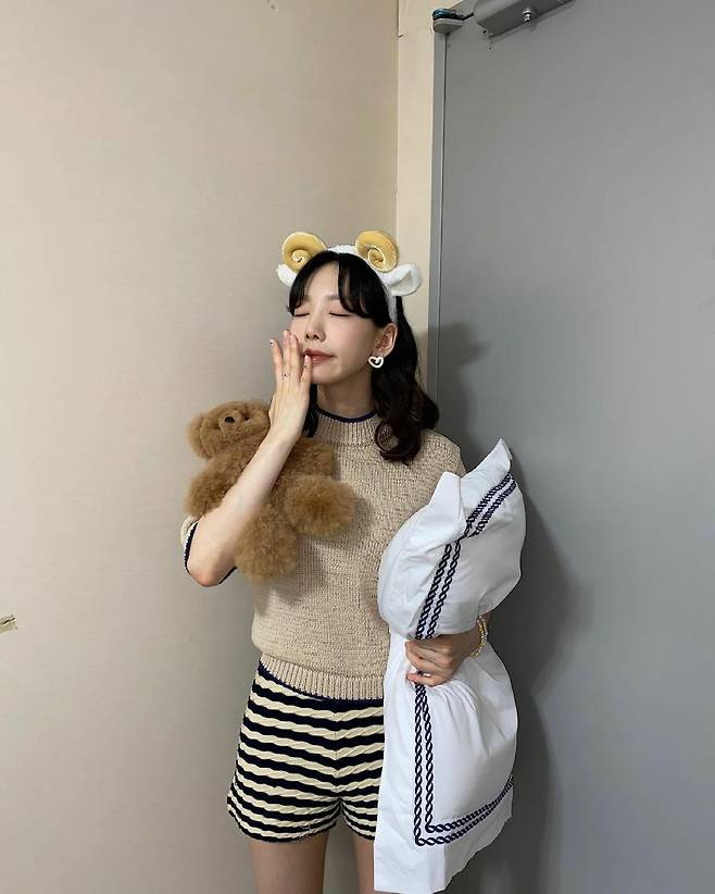 태연은 뉴트럴 컬러로 코지하면서 귀여운 룩을 선보였다.