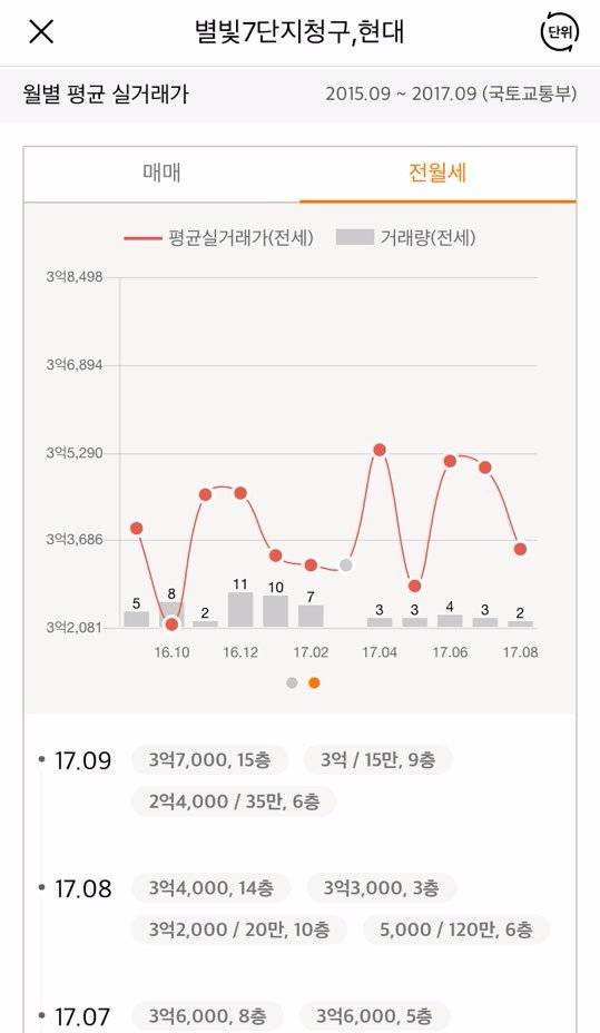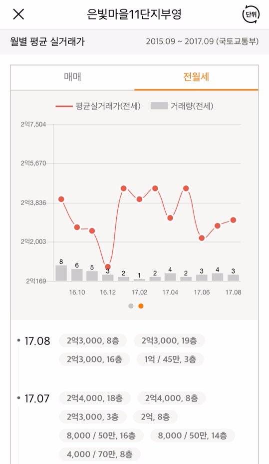 1억7,000(9층,8월)~1억9,000(8층,9월)
