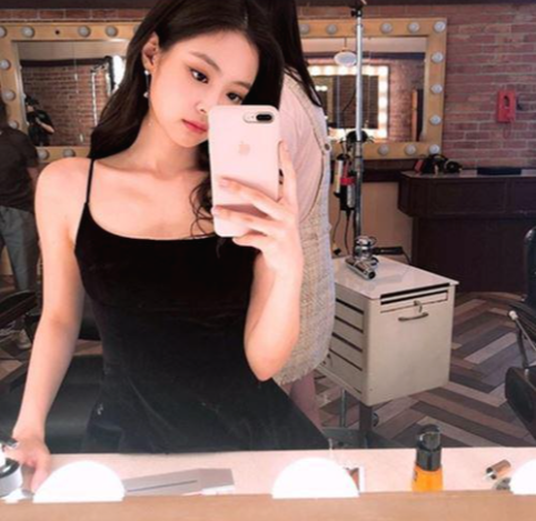 공개된 사진 속에는 검은색 민소매를 입고 거울 앞에서 셀카를 찍고 있는 제니의 모습이 담겼습니다. 웨이브진 헤어에 블랙의상으로 고혹적이면서 사랑스러운 룩을 완성했습니다. 특히 긴 목선과 직각 어깨가 돋보였습니다.