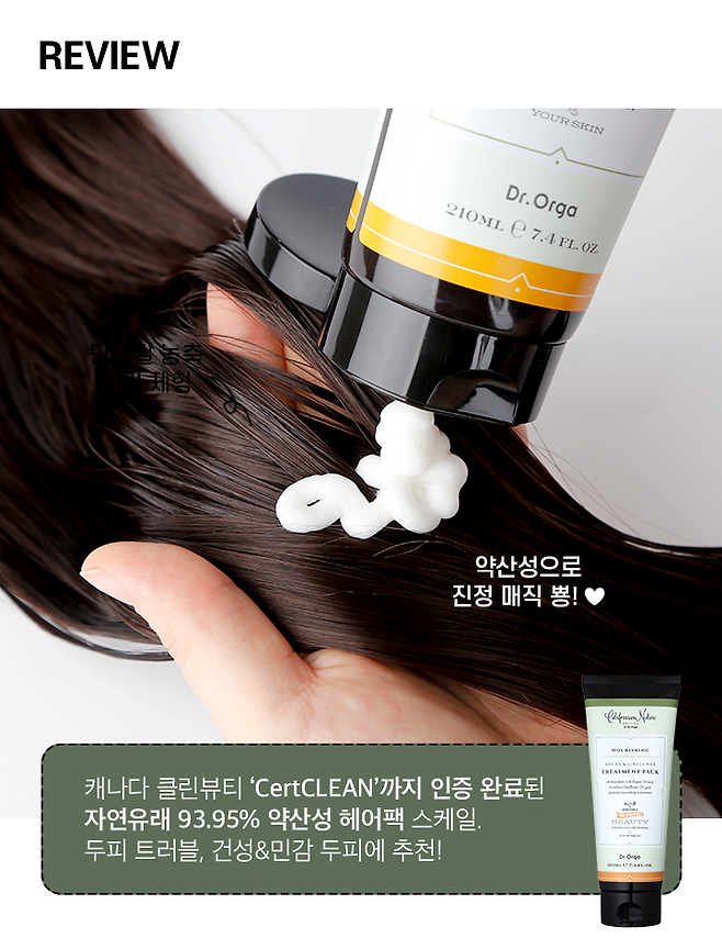 천연 성분의 고농축 헤어 마스크를 소개할게.