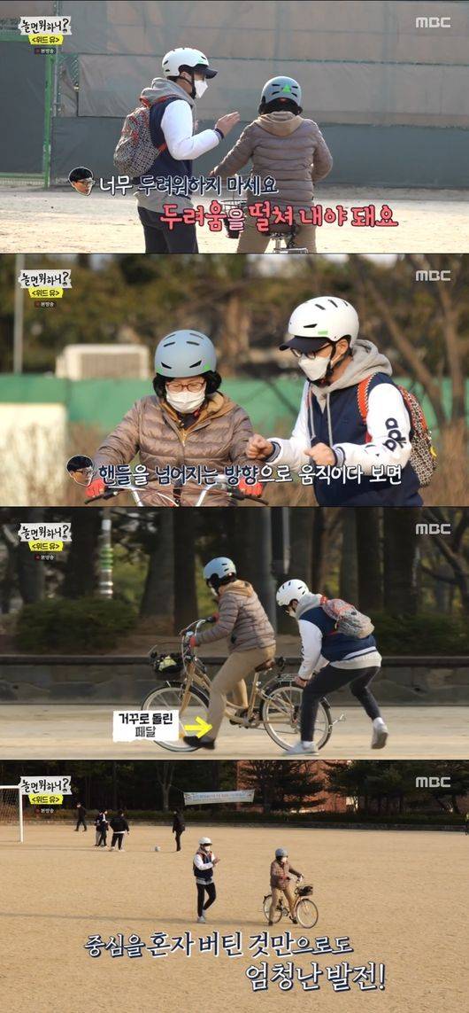 유재석은 어머니를 세심하게 케어했다. 넘어질 것 같으면 잡아주고, 뒤에서 잡아주는 등 최선을 다했다. 어느 순간부터 어머니는 유재석이 잡아주지 않아도 자전거를 잘 탔다. 유재석은 자전거를 선물했고, 어머니는 연습을 거듭해 완벽하게 자전거 타는 법을 습득했다. /elnino8919@osen.co.kr