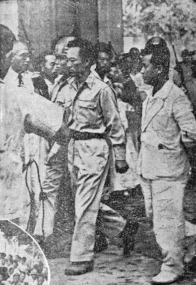 | ▲ 1949년 8월 3일, 백범 김구 암살 사건에 대한 재판 당시 범인 안두희의 모습 (1949년 8월 4일자 『동아일보 』보도사진) |