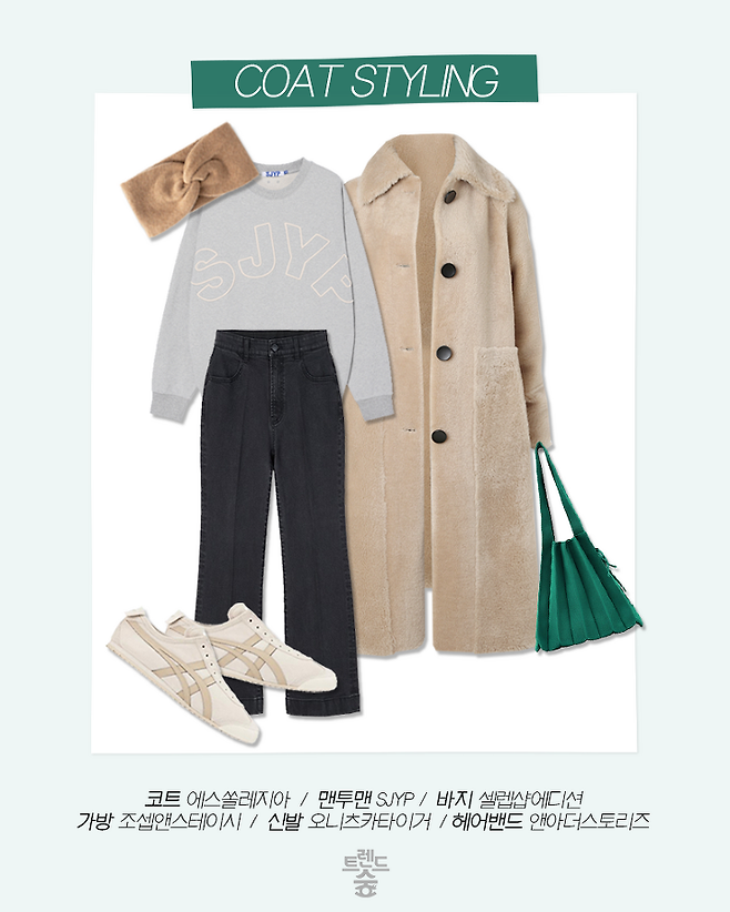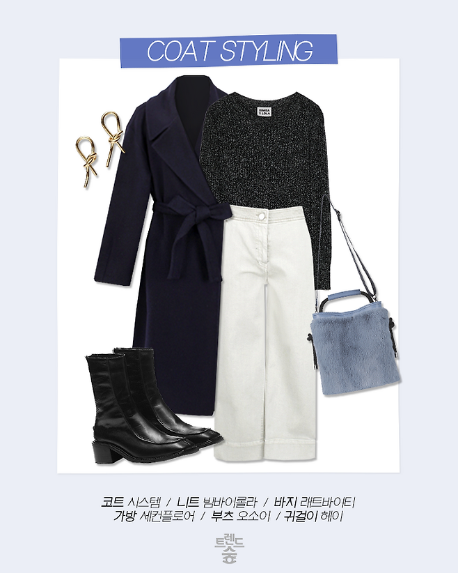 따뜻하면서도 스타일리시한 첫 번째 코트 룩 완성~