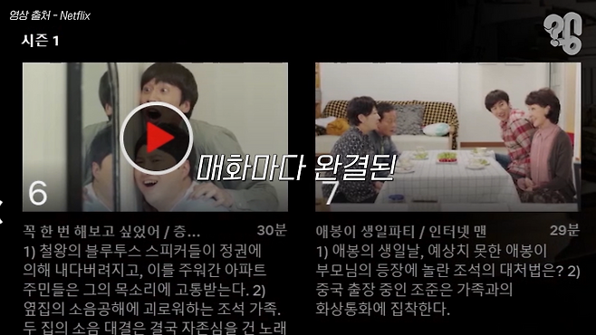 촌철살인 같은 느낌을 주는 부분도 있고. 연속극들은 연속해서 스토리를 쫓아가야 하는 게 있지만, 시트콤들은 순간순간 즐길 수 있잖아요.