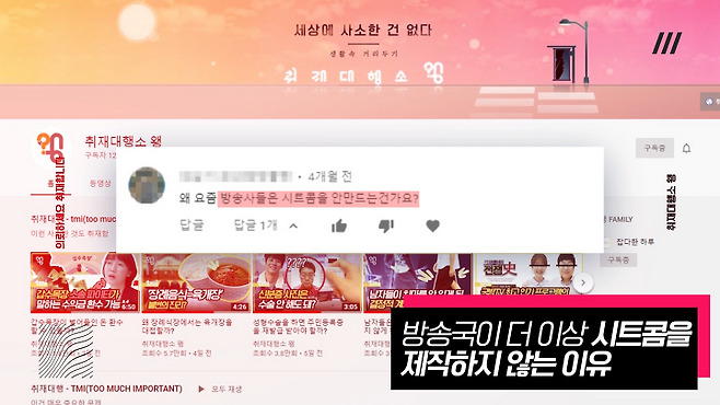 유튜브 댓글로 “시트콤이 왜 더 이상 제작되지 않는지 알아봐달라”는 의뢰가 들어와 취재해봤다.