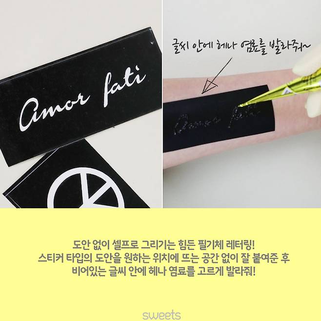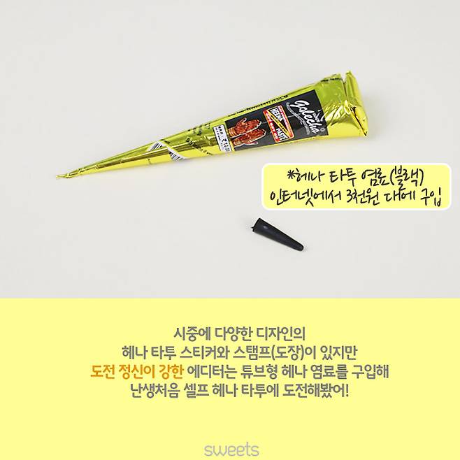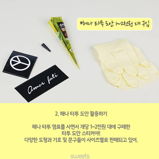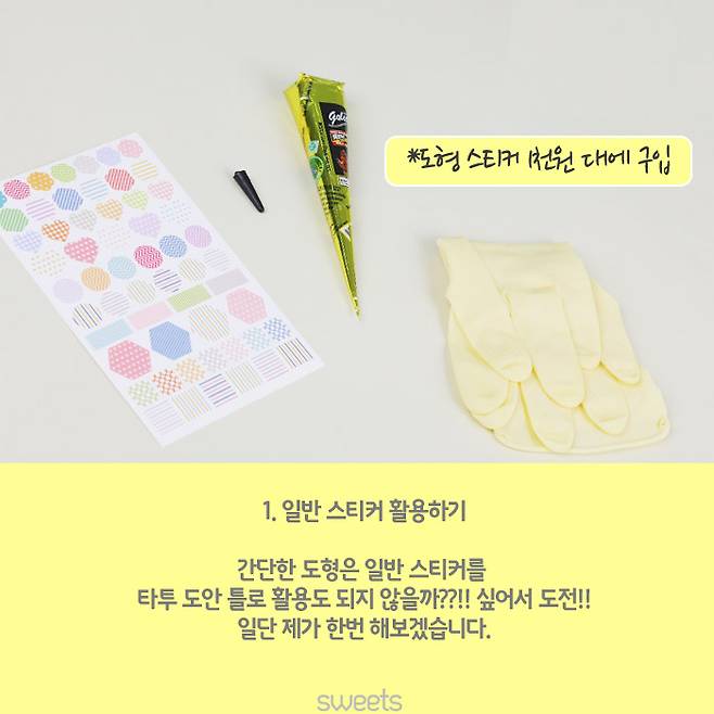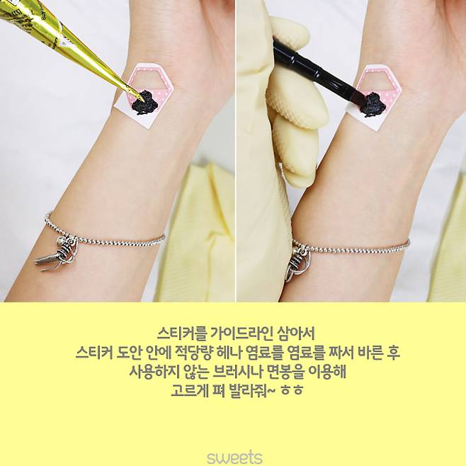 스티커의 빈 공간에 헤나 염료를 발라줘~
