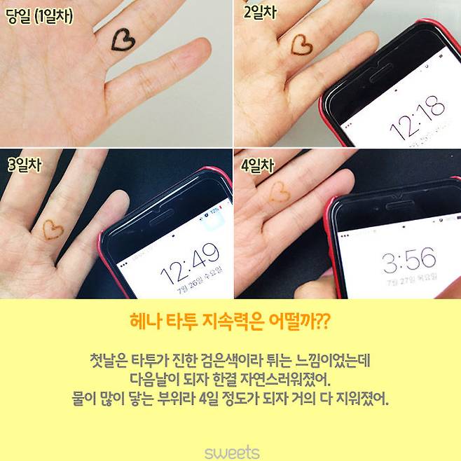 그럼 헤나 타투는 몇 일 정도 지속될까 궁금하지?