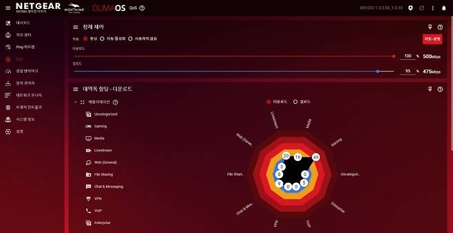 넷기어 XR1000은 듀마OS 3.0으로 게이머를 위한 다양한 기능을 구현했다. 앱 기반의 QoS(Quality of Service), 지오-필터와 지오-펜싱, 핑 히트맵, 실시간 모니터링, 트래픽 컨트롤러 등이 대표적이다. 네트워크 자원의 효율적인 분배와 관리를 높여주는 도구(툴)들이다.