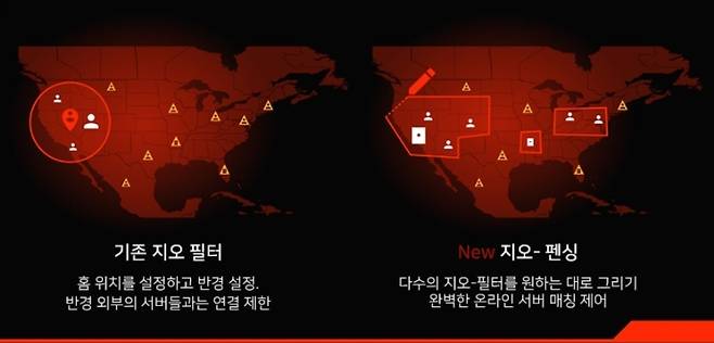 진화한 지오-필터 기능도 특징이다. 지오-필터는 멀티플레이 게임에서 무작위 매칭을 제어하는 나이트호크 시리즈와 듀마OS 만의 특화 기능이다.