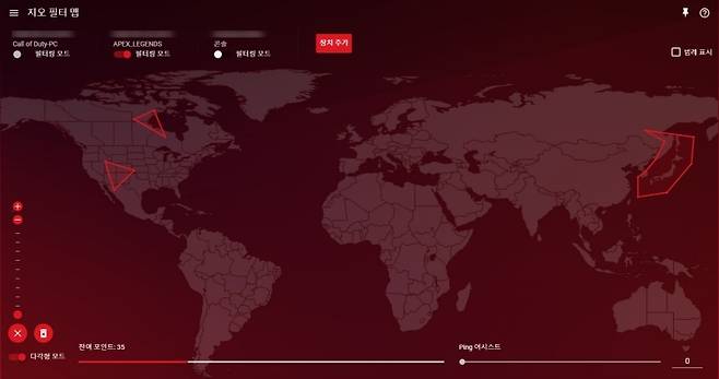 핑 히트맵을 쓰면 세계 각지의 게임 서버 정보를 한 눈에 살펴볼 수도 있다. 세계 지도에 각 서버의 물리적 위치와 연결 품질이 확인할 수 있는 기능이다. 즐겨찾는 서버의 핑 기록을 작성해 연결 품질을 볼 수도 있다. 국내에서도 즐기는 이용자가 많아진 글로벌 서비스 게임을 즐길 때 활용하기 좋다.