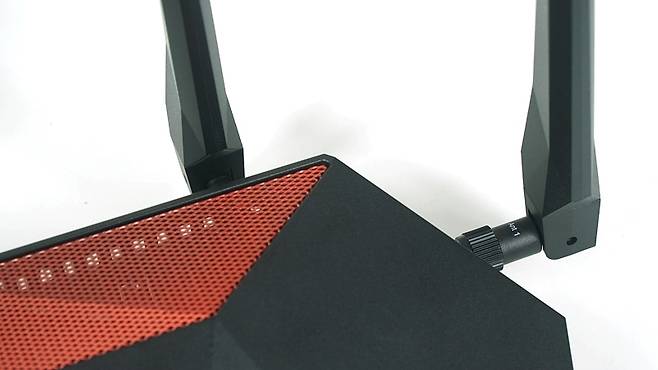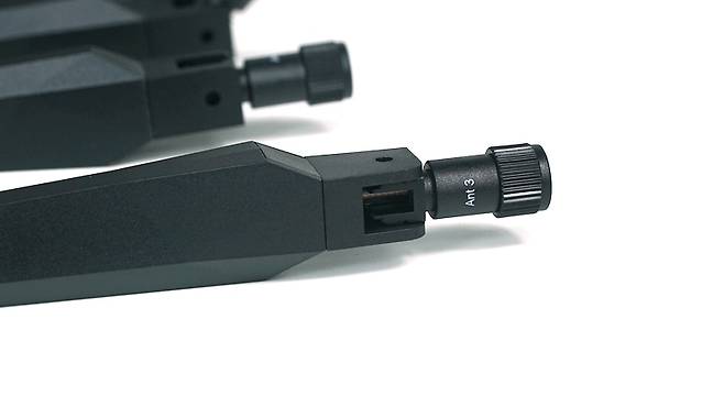 안테나 아래쪽은 굴곡진 디자인을 채용했다. 신호 강도를 높이기 위한 구조적인 디자인으로 추정된다. 넷기어에 따르면 4개의 탈착식 안테나는 신호 증폭기를 품어 강력한 무선 네트워크 성능을 뽐낸다.