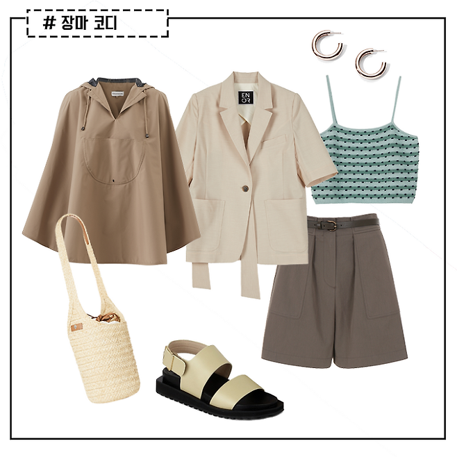 숏팬츠와 샌들이 주를 이룬 장마 스타일링을