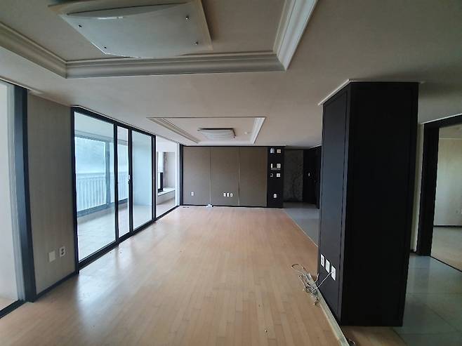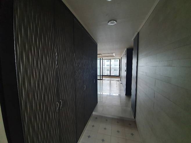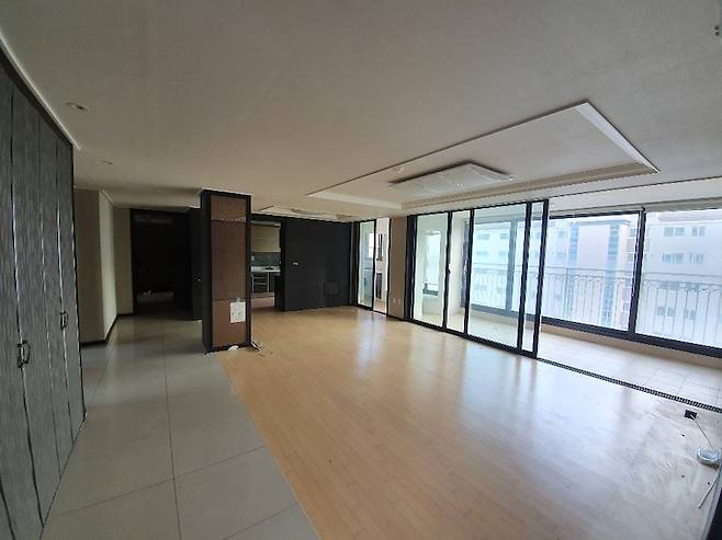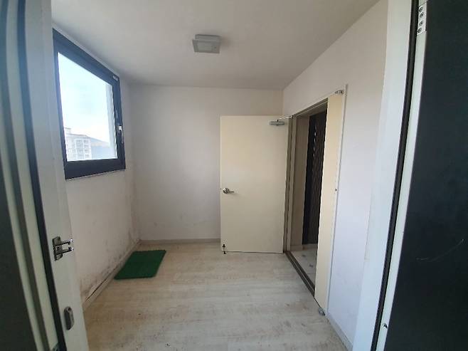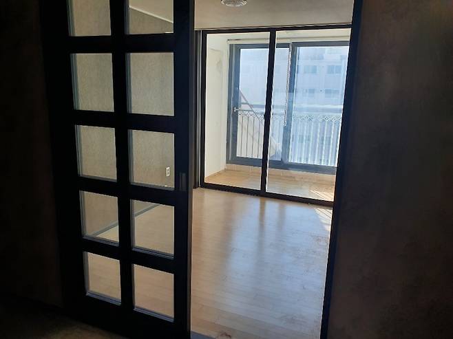 거실 비포사진이에요. 현관에서 중문을 지나 들어오면 왼편으로 보입니다. 베란다가 상당히 넓은 곳이었어요.