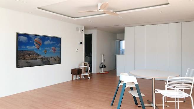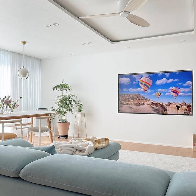 추운 겨울 어느 날 TV에 눈 오는 영상을 틀어두었는데, 이 사진을 보고 많은 분들이 순간 1층으로 이사간 줄 알았다고 하셨어요. 마치 창문같은 느낌^^