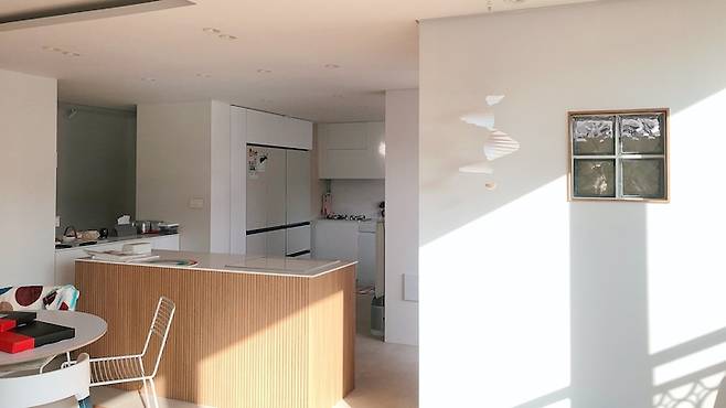 주방쪽에서 바라본 거실 모습이에요. 거실에서 제일 큰 공사는 바로 베란다 확장이었습니다. 안쪽 내부 샷시 철거 후 외부 샷시는 엘지하우시스 S7 이중창으로 시공하였고 보일러 배관도 거실베란다까지 연결하여 확장공사를 마무리했어요. 베란다확장하면 추운 거 아니냐는 질문을 많이 받는데 전혀 춥지 않습니다. 지역이 강원도라 겨울에 특히 더 추운데도 이번 겨울 지내보니 따뜻했어요. 해가 잘 드는 영향도 있겠죠?