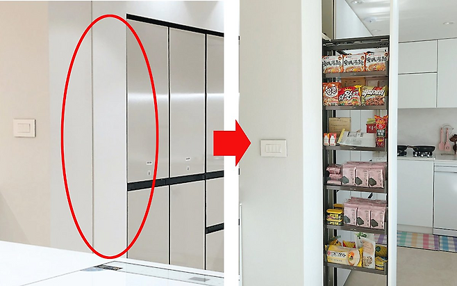 팬트리는 쭉 뺀 다음 양 옆으로 회전도 가능합니다.