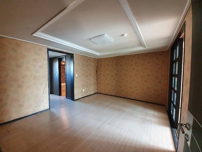 안방 침실 비포사진이에요. 침실은 양옆으로 작은 방이 하나씩 더 있는 구조이며 그 끝은 양쪽 다 베란다가 있습니다. 침실에서 바라보면 왼편은 안방욕실과 파우더룸이 위치해있어요.