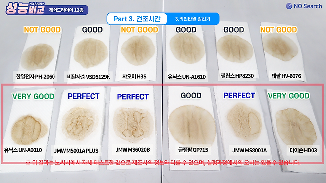 실제 젖은 머리를 완전히 건조하는 테스트를 진행해 보았지만,
