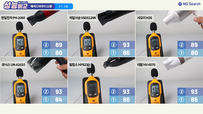 한일전자와 샤오미 제품이 89dB로 조금 작기는 했지만
