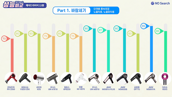 비달사순과 필립스 제품의 풍속이 가장 높았습니다.