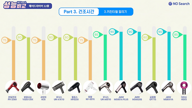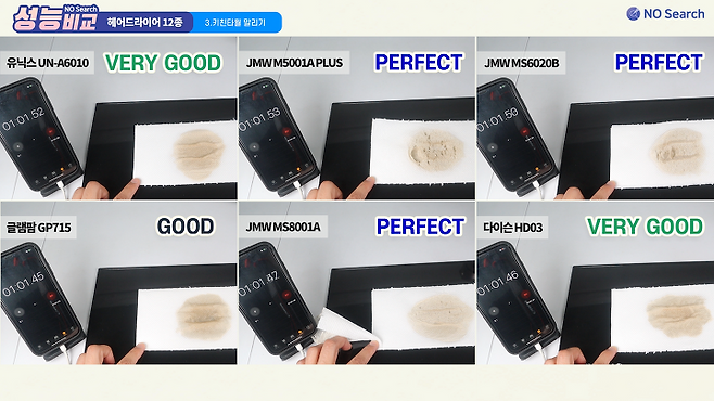 특히 JMW 3개 제품의 건조성능은 매우 뛰어났습니다.