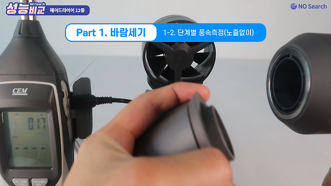 이번에는 노즐을 빼고 같은 방법으로 바람세기를 측정해 보았습니다.
