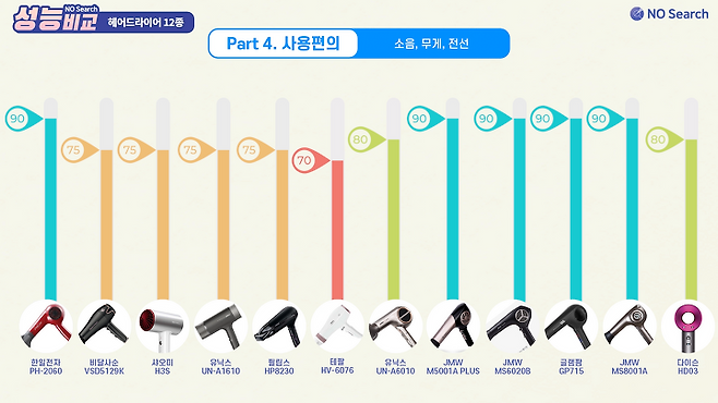 사용편의는 한일전자, 글램팜, JMW 3개 제품이 가장 좋았습니다.