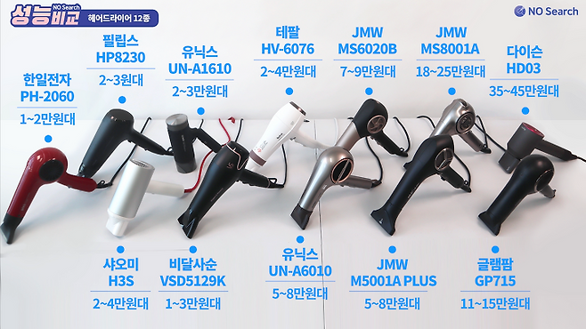 오늘은 헤어드라이어의 성능을 비교한 영상을 만들어 보았습니다.