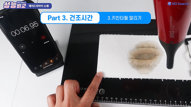 이번에는 실제로 건조시간은 얼마나 차이가 나는지 측정해 보았습니다.