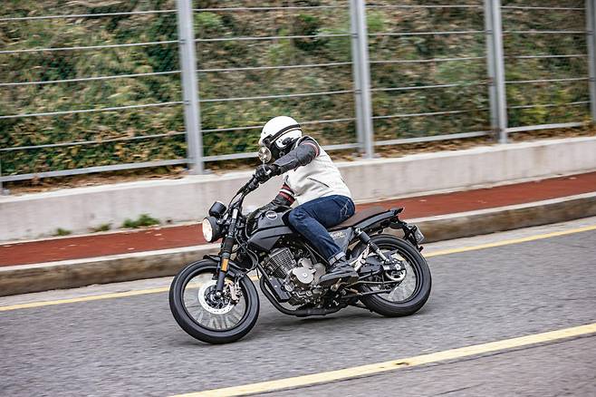 노스텔지아 울프 125는 124cc 공랭 엔진을 탑재하여 최고출력 9마력, 최대토크 9.3Nm의 힘을 낸다. 수치상으로는 다소 아쉽게 느껴질 수 있는데 저속부터 부드럽고 끈끈한 토크를 발휘한다. 125kg의 가벼운 차량 무게 덕분에 클러치를 붙일 때 스로틀을 조금만 열어줘도 쉽게 출발할 수 있다. 시트고는 778mm로 부담 없는 수치인데 탑승했을 때 시트가 잘 눌리는 편이고 다리 내리는 공간이 날렵하여 더욱 낮게 느껴진다. 시트가 일자 형태로 보이지만 막상 앉아서 가속하면 라이더가 뒤로 밀리지 않도록 꼬리뼈 부분을 슬쩍 받쳐준다. 라이딩 자세를 취했을 때 상체가 서는 자세이기 때문에 시야가 트여 초심자도 마음 편히 주행할 수 있다. 케이블 클러치는 한 손가락으로 조작할 수 있을 정도로 가볍고 처음과 끝이 부드럽게 이어지는 편이다. 1단 기어는 기어비를 타이트하게 설정해 초기 가속이 즐겁다. 하지만 2단 기어부터는 지극히 여유로운 설정이다. 초반에 탄력을 붙이는 것을 신경 쓰지않으면 기어를 높였을 때 살짝 늘어지는 느낌이다. 하지만 노스텔지아 울프 125의 타깃층인 초심자를 고려한다면 충분히 부드러운 가속 능력이다.