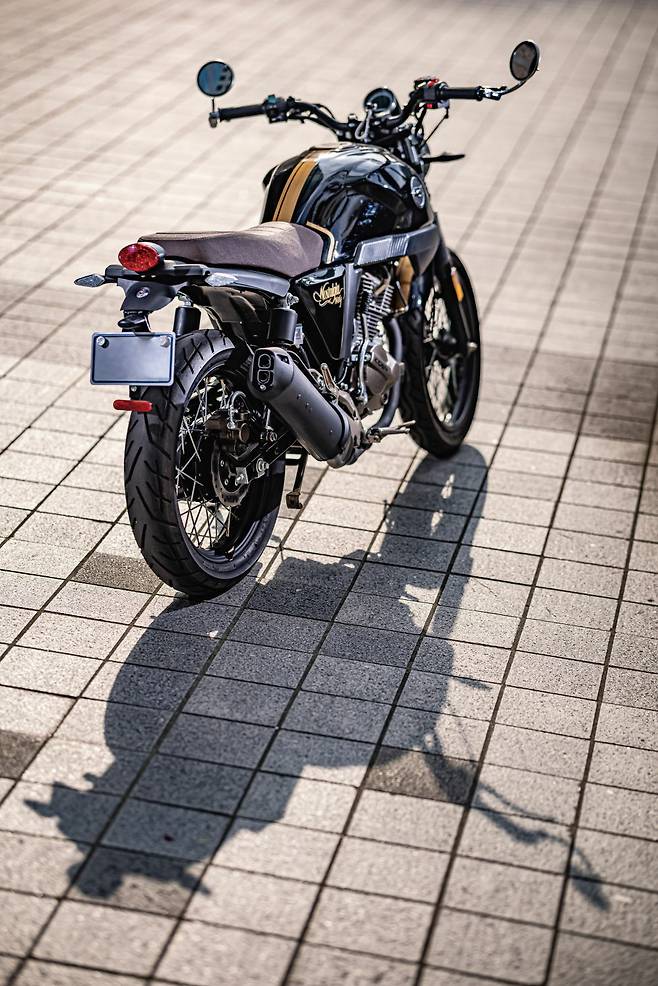 바이크를 선택할 때의 우선순위는 모두 제각각이지만 디자인과 가격은 빼놓을 수 없는 요소다. 노스텔지아 울프125는 클래식을 좋아하는 라이더들이 좋아할 디자인을 갖췄다. 스포츠 카페레이서 스타일의 노스텔지아 울프125는 원형 헤드라이트를 탑재하고 전후 스포크 휠을 채용해 기본적인 클래식의 멋을 낸다. 더불어 원형 크롬 바엔디 미러를 순정으로 탑재하고 정립식 포크에는 튜브를 장착해 레트로한 디테일을 더했다. 프런트 펜더와 연료탱크, 배터리 커버에는 고급스러운 유광 블랙 컬러를 입히고 골드 컬러 페인팅으로 멋을 냈다.