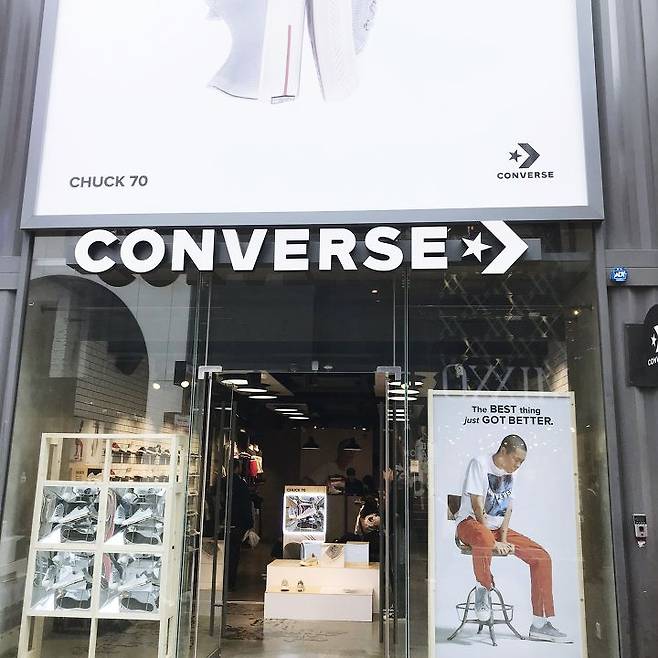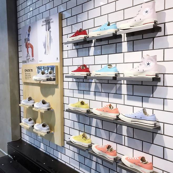 매장 전면 컨버스 신상을 신은