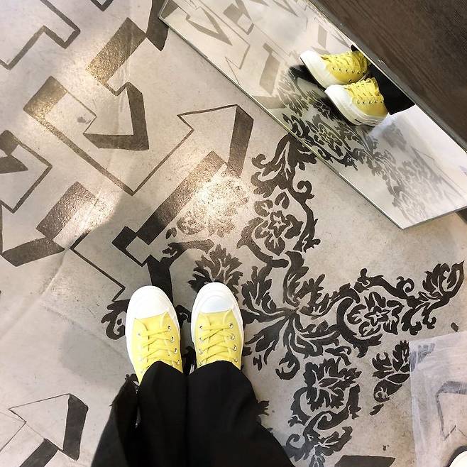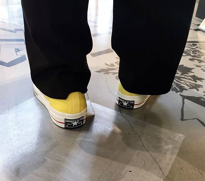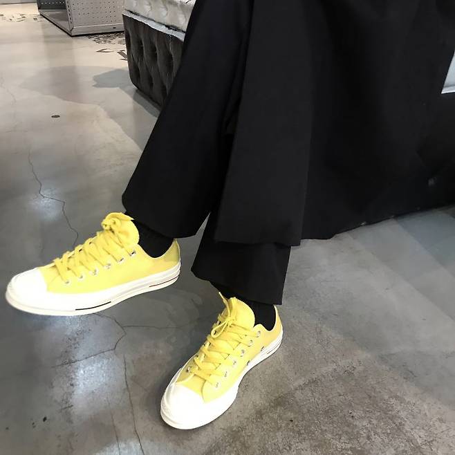 검정 팬츠에 포인트로 신은