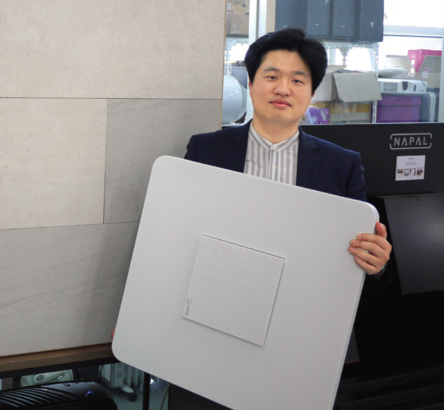 대학원에서 음향공학을 전공한 이 대표는 건물의 음향 시스템을 설계하면서 인테리어 업체와 일할 기회가 많았어요. 인테리어 디자이너들은 “천장, 바닥, 벽재, 가구, 식탁, 의자 등 눈에 보이는 모든 게 디자인적 요소가 있는데, 스피커만 네모나고 하얀색과 검은색밖에 없다”는 불만을 그에게 토로했어요. 여기서 이 대표는 역발상적 착안을 했어요. “인테리어 디자이너들은 예쁜 모양의 스피커가 필요하다는데, 아무리 예쁜 스피커도 자리를 차지하잖아요. 인테리어 디자인을 마친 공간에 스피커가 보이지 않게 음악을 추가하면 공간 활용도를 높일 수 있겠다 싶었죠.”