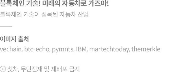 이게 화폐에만 적용되는 것은 아니구나 싶은 순간, 자동차 산업에서도 블록체인 기술이 이미 준비되고 있다고 합니다. 어떻게 접목이 된다는 것일까요? 이제부터 설명 들어갑니다.