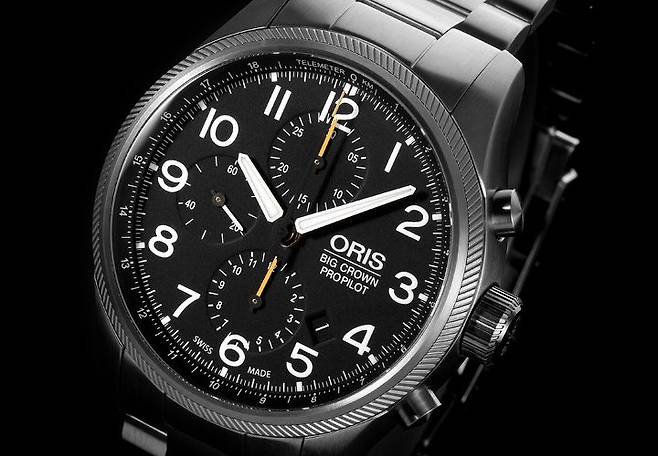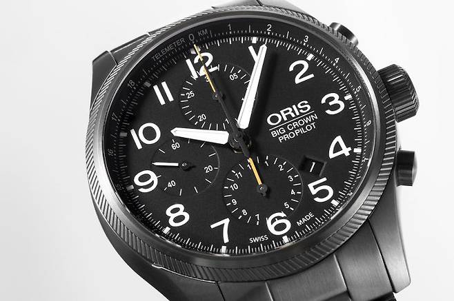 2014년에 출범한 빅 크라운 프로파일럿은 공개되자마자 오리스의 항공 컬렉션을 이끄는 중핵으로 부상했습니다. 구성원 대부분이 하나 이상의 기능을 보유했으며, 고도계(altimeter)나 알람 기능을 갖춘 특색 있는 모델과 매뉴팩처 칼리버를 실은 플래그십도 있습니다. 이번 리뷰에서 만나볼 빅 크라운 프로파일럿 크로노그래프(Big Crown ProPilot Chronograph)는 파일럿 워치의 DNA를 수혈한 전천후 시계입니다.