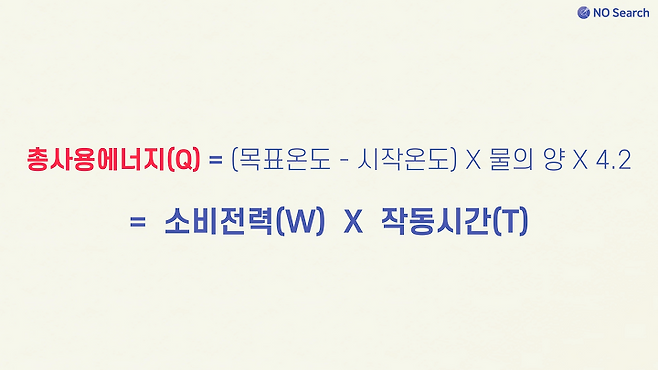 즉, 같은 양의 물을 같은 온도로 높이는 경우에 전력이 높으면 시간이 짧아지고, 전력이 낮으면 시간이 오래 걸릴 뿐 전체 사용되는 전력량은 동일합니다.