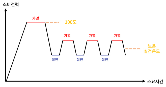 즉, 보온 기능 = 단순 가열 X 횟수이기 때문에 소비전력의 높고 낮음과는 크게 연관성이 없습니다.