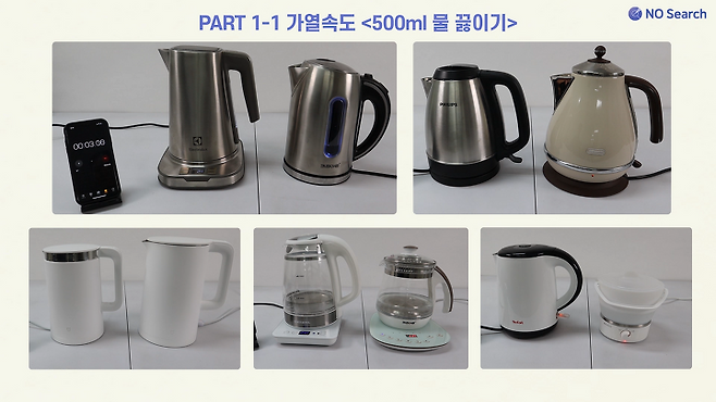 실제 10개 제품의 물 끓이는 속도와 소비전력을 테스트 한 과정을 보여드리겠습니다.