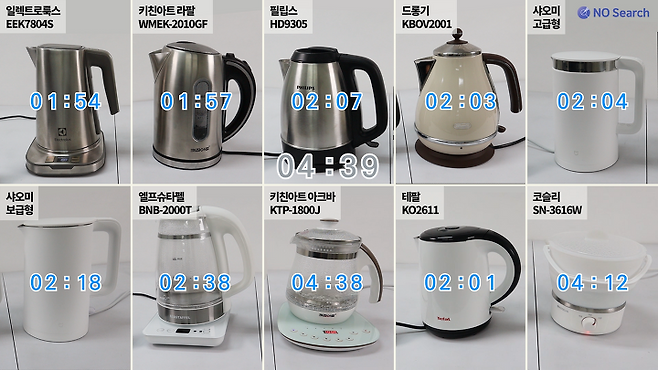 전기포트의 종류에 따라 물을 끓이는 시간에 차이가 있습니다.