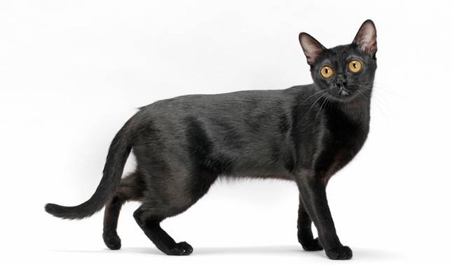 봄베이는 몸 전체가 검고 부드러우며 광택이 나는 털로 덮여 있어요.매끈한 근육질 체형이며 뼈도 튼튼하죠.