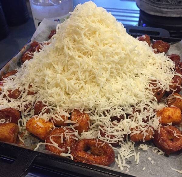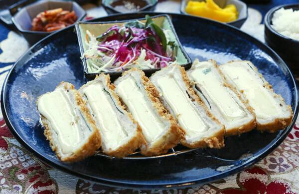 홍대에서 줄 서서 먹는 돈가스 맛집으로 유명한 ‘혼가츠’. 이곳에서는 치즈 덕후라면 애정할 수밖에 없는 치즈 돈가스를 색다르게 즐길 수 있다. 비주얼부터 남다른 치즈 돈가스는 피자 치즈를 고기에 감싸 튀겨 치즈를 품은 모습으로, 흘러내리지 않고 가지런히 정렬된 치즈 모습이 일품이다. 식감은 마치 치즈스틱처럼 부드럽고 고기의 육즙이 어우러져 환상의 조화를 맛볼 수 있다. 또한, 일반 돈가스 소스와 함께 딸기맛, 바나나맛 소스까지 준비해 다채로운 맛을 즐길 수 있다.