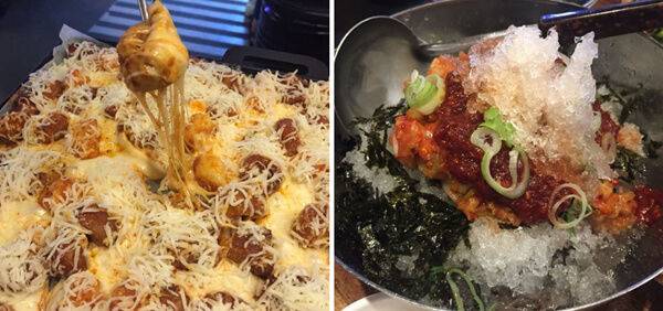 막창 위에 눈처럼 소복이 쌓인 치즈 토핑으로 유명한 ‘배떼기곱창’. 부담 없는 가격에 선보이는 곱창과 막창을 취향에 따라 즐길 수 있다. 야채, 순대, 오돌, 제육, 주꾸미 등의 곱창 메뉴와 소금, 데리야끼, 양념 등의 막창메뉴 선보이며, 그중에서도 배떼기곱창의 시그니처 메뉴인 눈꽃 막창이 가장 인기가 좋다. 직화로 구운 양념 막창에 푸짐한 치즈 토핑이 녹아들어 매콤한 양념과 부드러운 치즈의 조화가 매력적이다. 사이사이 쫄깃한 떡 사리도 들어있어 다채로운 식감을 느낄 수 있다. 인기 3대장 야채곱창, 소금막창, 데리야끼막창을 한 번에 즐길 수 있는 배떼기곱창도 베스트메뉴. 기본으로 세팅되는 선지해장국은 무한제공. 빙수처럼 갈린 얼음이 올라간 빙수 막국수는 마무리로 먹기에 적당하다.
