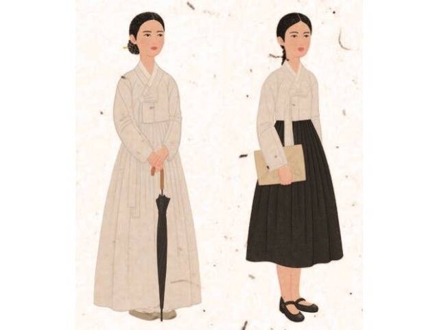 1900년대 들어 한복은 간소하게 변합니다. 저고리의 길이는 짧아지고 겨드랑이 아래의 선은 길어졌으며 깃머리는 둥글게 변했죠. 한복의 형태 변화와 함께 흰색 옷을 금지하고 색깔 있는 옷을 장려하기 시작했어요. 이러한 의복 간소화는 이화학당의 외국인 교사들이 먼저 시도했는데요. 가슴을 조여 입어야 하는 띠허리 대신 활동이 자유로운 어깨허리를 치마에 달았고 이후 독립만세운동을 계기로 전국적으로 확산했어요.
