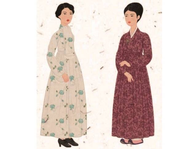 신문물의 유입과 생각의 전환은 의복의 간소화와 더불어 실용화 경향을 이어갔는데요. 저고리 길이가 허리선까지 길어지고 품도 여유 있게 커졌으며 소매의 진동과 소매통이 둥글고 넓게 변화하면서 편안해졌어요. 고름이 짧아지거나 단추나 브로치가 고름을 대체하기도 했죠. 치마는 하나의 통으로 만들었고 길이가 짧아졌는데요. 또 버선 대신 양말과 구두를 신기 시작했어요. 한복의 변화는 옷감 소재에도 적용됐습니다. 주로 면, 마, 견직물을 사용하다가 조젯과 같은 양장지로 저고리와 치마를 만들었고 모슬린이나 서지 같은 모직물과 인견 등 수입 직물을 즐겨 사용하면서 유행을 이끌어갔어요.